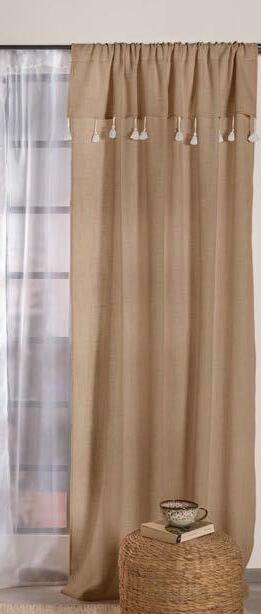 Con tela tipo lino y flecos
