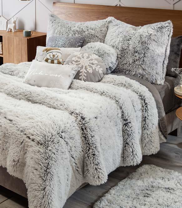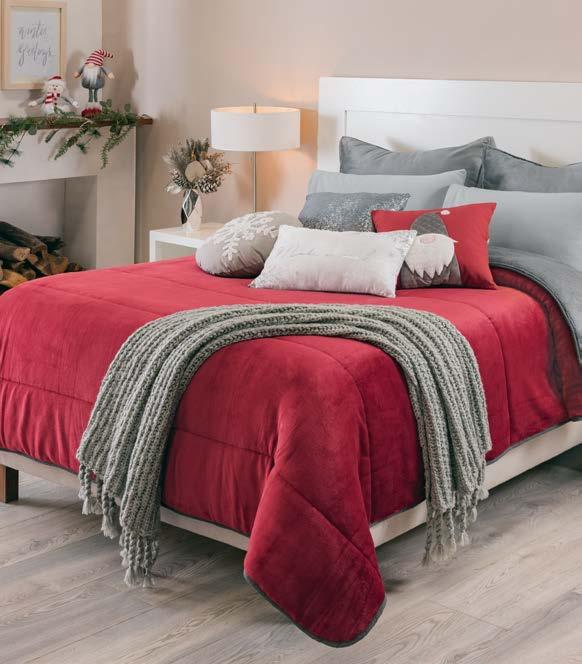 1. Edredón Castaña MAT · 86498 2. Sábanas Cabos Castaña MAT · 24921 | 3. Cojín Snow Man · 87202 Un estilo natural sin cambiar toda tu ropa de cama, deja que la navidad llegue a cada rincón de tu hogar de forma fácil para las próximas fiestas.