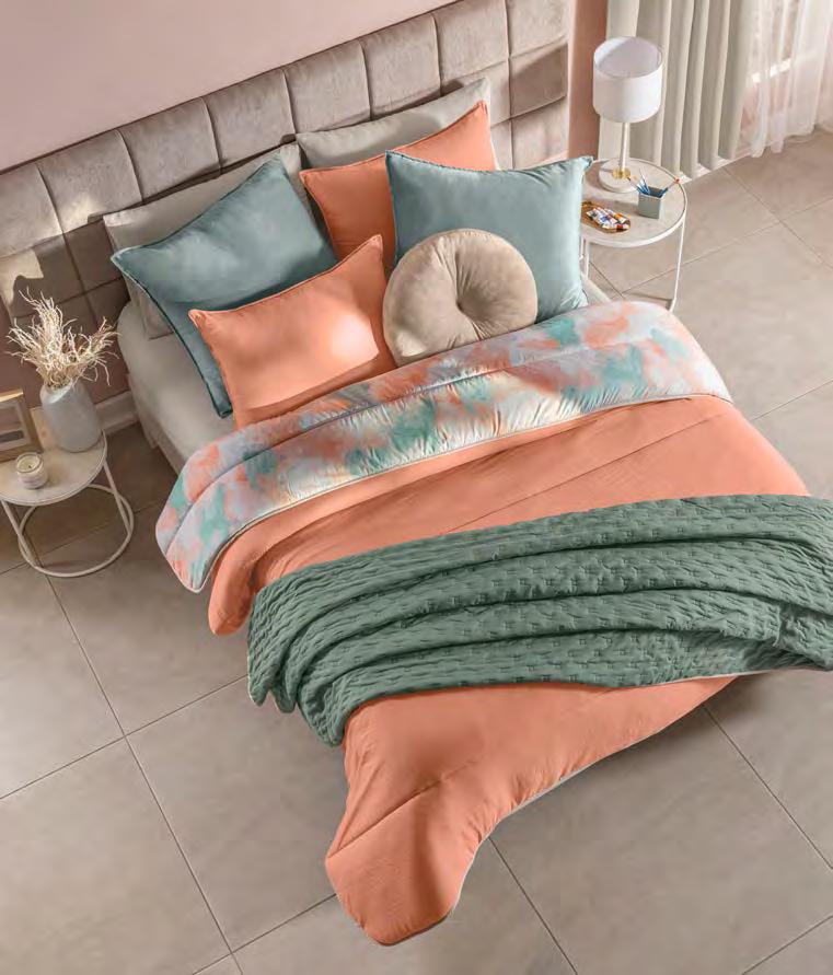 Su tela delicadamente tejida hace de este edredón la mejor combinación entre color, textura y confort que transformará cualquier habitación.