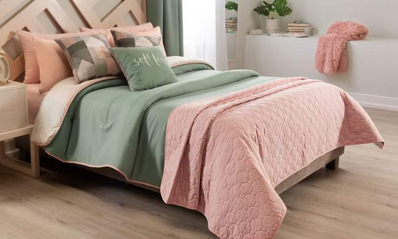 Give a different style to your quilt for on-trend looks in your bedroom. A layered bed Pretty Reversible Comforter
