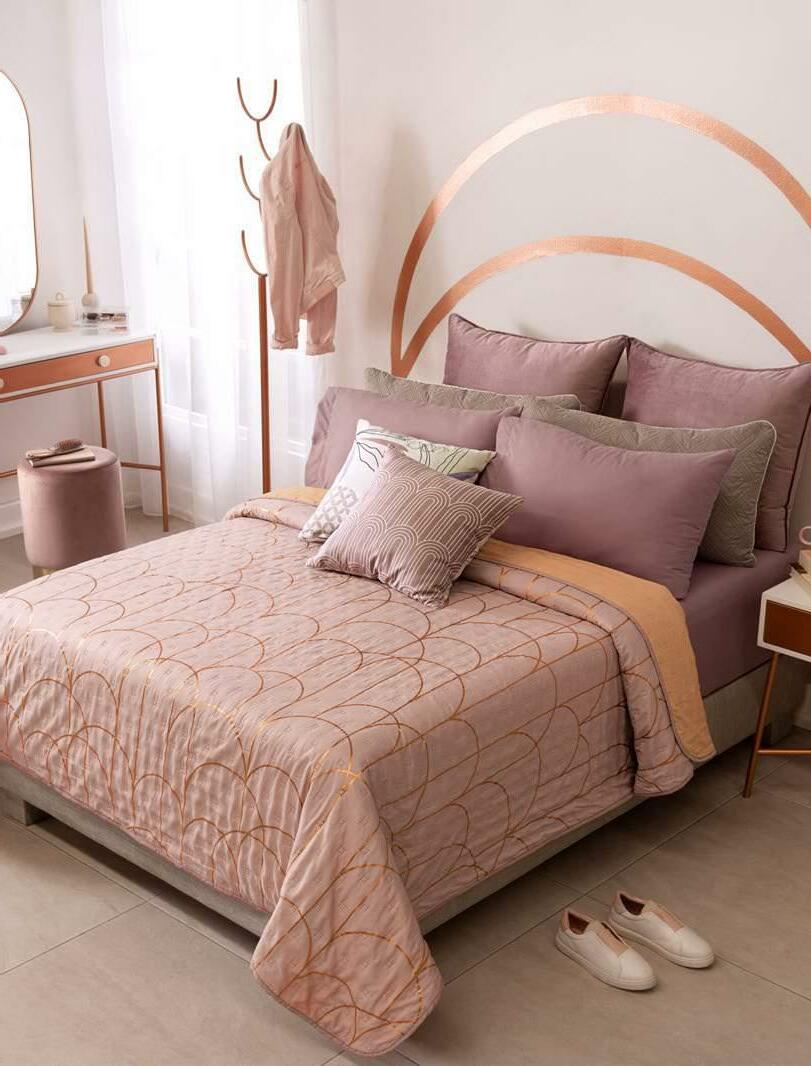 rose gold foil pattern! Customize your Novo comforter changing only the accesories a. Mérida cushion cover - 87500 - $16.90 b. Deco cushion - 87514 - $16.90 c. Novo Deep Rose STD pillow cover - 86621 - $11.90 a Quilted COLOR RESISTANT EASY TO WASH AND STORE ULTRASLIM COMFORTER STARTING AT $30.90 TWIN SIZE Copper Reversible Novo Comforter *Complements are sold separately 87428 $30.90 TWIN SIZE FULL SIZE XL 87430 $38.90 KS 87431 $48.90 QS 87430 $38.90 10 *The suggested retail prices in the catalog do not includes taxes, shipping or handling. *Los precios de venta sugeridos en todo el catálogo no incluyen impuestos, envío ni manejo. Viasoft Washed Rose QS sheet set 87498 $ 29.90 Voga Deco EUROPEAN pillow cover 87798 $ 24.90