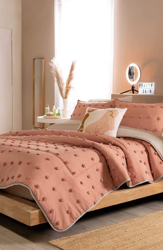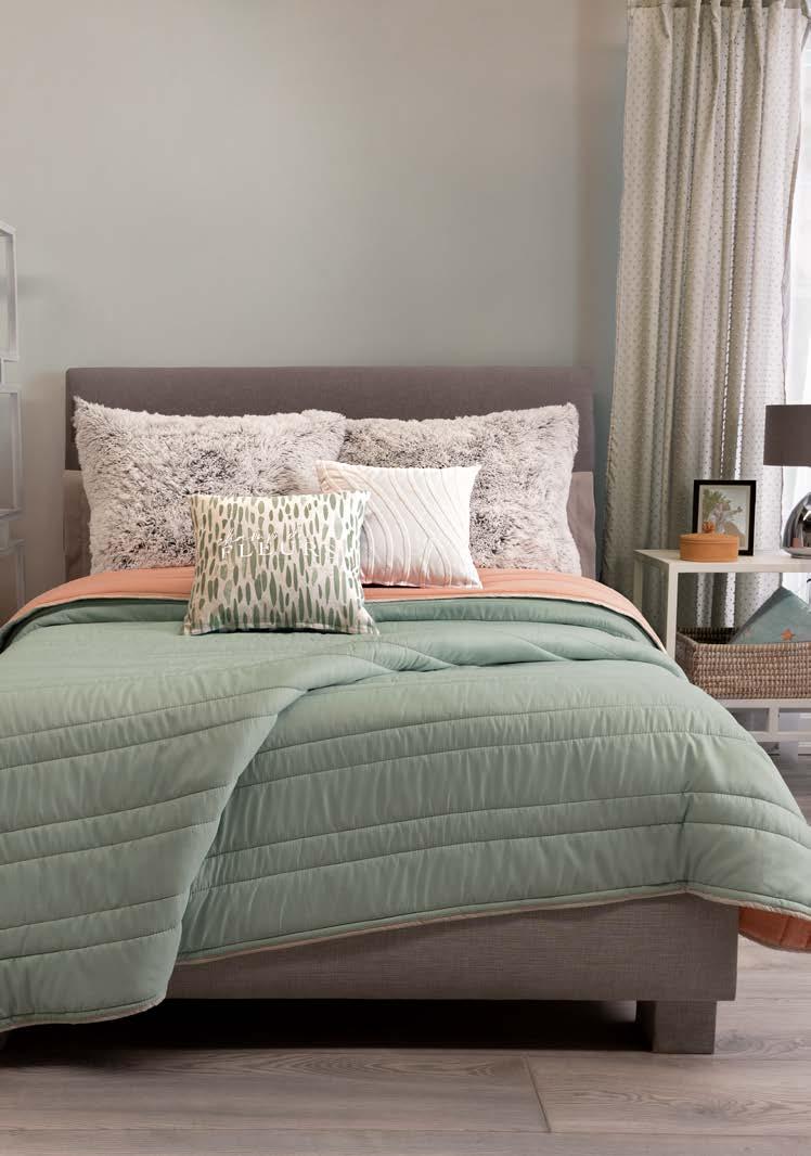 THE ART OF LAYERING Achieve that fluffy and cozy look by adding the incredible Duvet filling under your duvet cover. Duvet Comforter QS 86836 $ 58 .90 Rose gold foil Jade Reversible Comforter set *Complements are sold separately 87528 $56.90 1 Pillow cover 1 Cushion TWIN SIZE 87529 $74.90 2 Pillow cover 2 Cushion FULL SIZE XL 87529 $74.90 2 Pillow cover 2 Cushion QS amazing double-sided! 4 *The suggested retail prices in the catalog do not includes taxes, shipping or handling. *Los precios de venta sugeridos en todo el catálogo no incluyen impuestos, envío ni manejo.