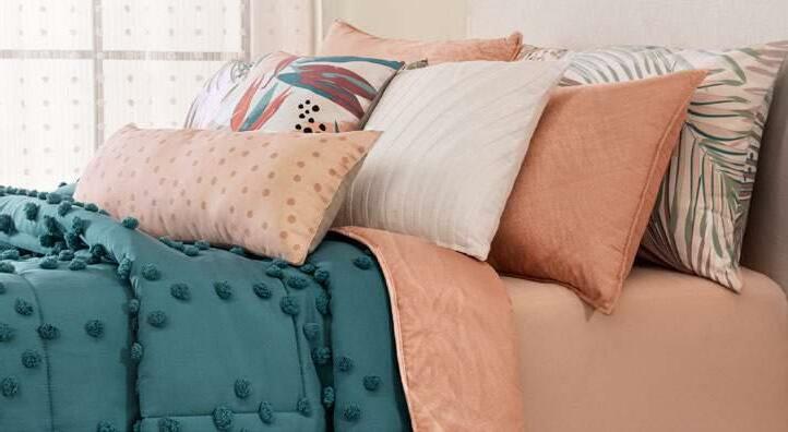 Enjoy the pom poms on the pillow covers, comforter and the metallic inked cushion Details does it matter VIA SOFT TREN_ DY. amazing double-sided! 5 her *The suggested retail prices in the catalog do not includes taxes, shipping or handling. *Los precios de venta sugeridos en todo el catálogo no incluyen impuestos, envío ni manejo. Viasoft Washed Rose QS sheet set 87498 $ 29.90
