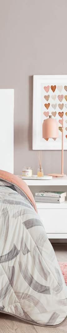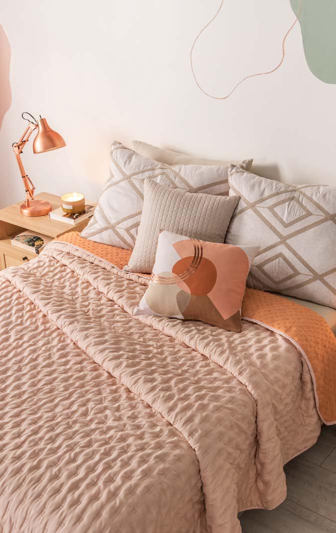 VIA SOFT Can be combined with everything! FULL SIZE XL 86836 $58.90 QS 86836 $58.90 KS 33067 $78.90 Duvet 87536 $51.90 TWIN SIZE *Complements are sold separately Matisse Cushion 86574 $16.90 Reversible Novo Comforter Copper Full size XL 87430 $ 38 .90 Velvet Deep Rose Cushion cover 87516 $ 9.90 Voga Deco European Pillow cover 87798 $ 24.90 Diamond quilting allows it to retain its shape. A practical choice for your bed Scan and learn more about your next duvet TREN_ DY. EXTRA THICK menú 39 her *The suggested retail prices in the catalog do not includes taxes, shipping or handling. *Los precios de venta sugeridos en todo el catálogo no incluyen impuestos, envío ni manejo.