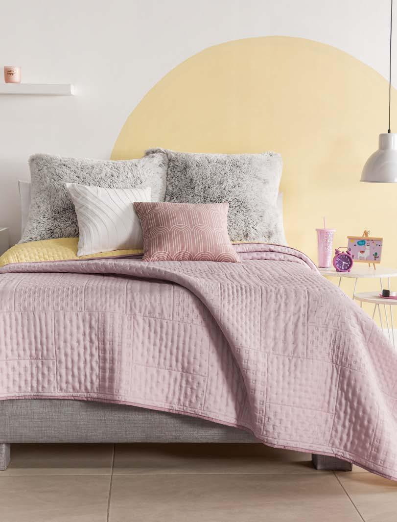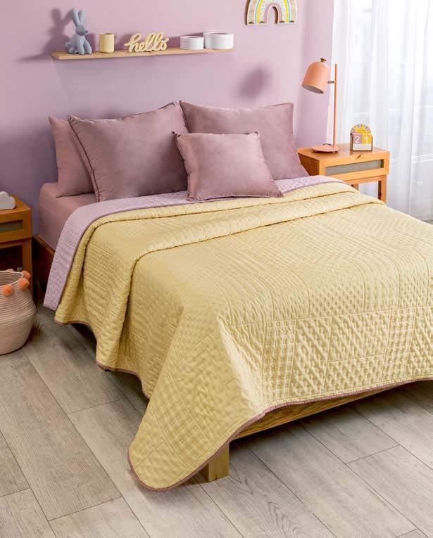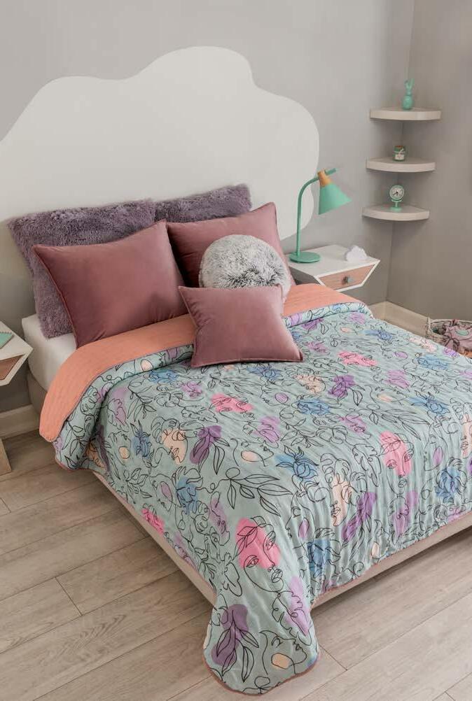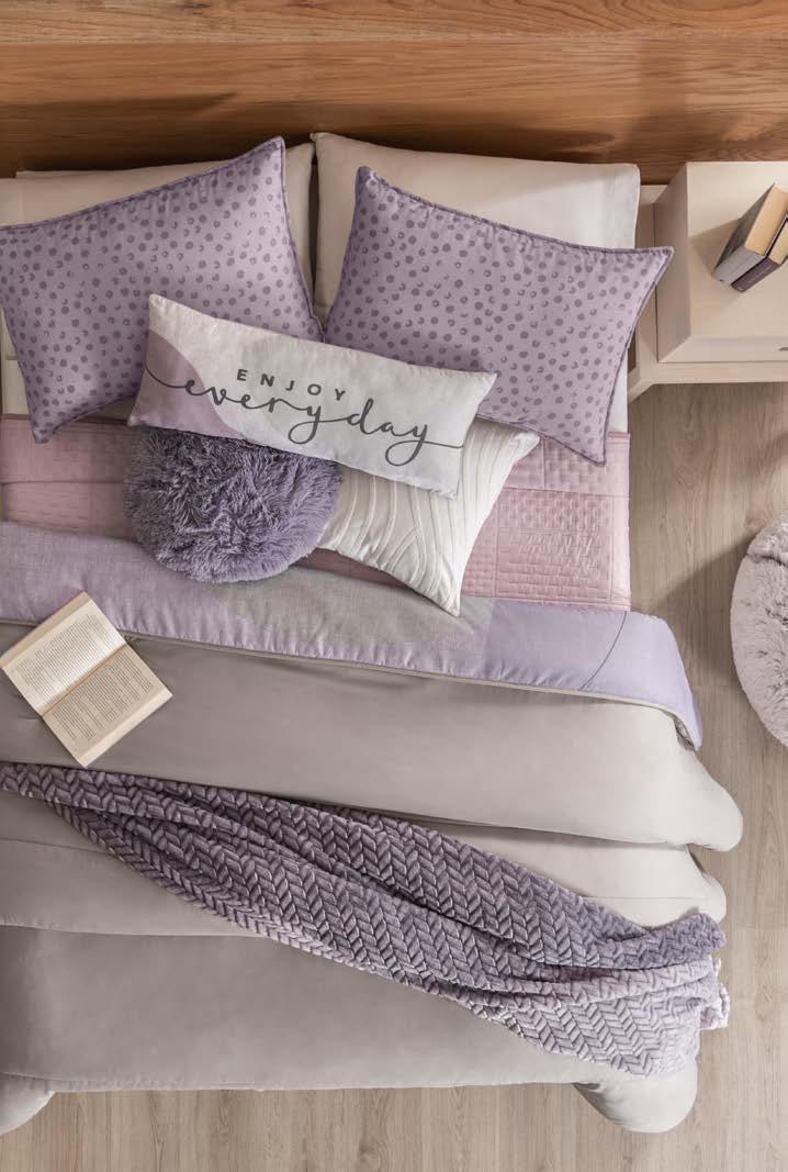 Quilted Reversible! Linen-like finish Washed treatment that makes it super soft. 87520 $29.90 TWIN SIZE *Complements are sold separately QS 87522 $34.90 KS 87523 $44.90 Menta Reversible Basic Comforter VIASOFT PLUS+ COLOR RESISTANT EASY TO WASH AND STORE STARTING AT $29.90 TWIN SIZE 33 her *The suggested retail prices in the catalog do not includes taxes, shipping or handling. *Los precios de venta sugeridos en todo el catálogo no incluyen impuestos, envío ni manejo. Velvet Deep Rose cushion cover 87516 Voga Roseta EUR XL pillow cover 87248 $15.90 Viasoft Creta QS sheet set 87505 $ 49.90 $ 9.90