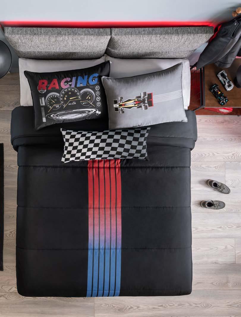 Racing Reversible Comforter 87540 $74.90 1 Pillow cover 1 Cushion TWIN SIZE 87541 $89.90 2 Pillow covers 1 Cushion FULL SIZE XL 87541 $89.90 2 Pillow covers 1 Cushion QS *Complements are sold separately Reversible! 16 *The suggested retail prices in the catalog do not includes taxes, shipping or handling. *Los precios de venta sugeridos en todo el catálogo no incluyen impuestos, envío ni manejo. a. Camiseta Gris Glacial QS Sheet set - 23738 - $81.90 b. Cabos Vialifresh QS Sheet set - 24751 - $68.90 Get the look: a b