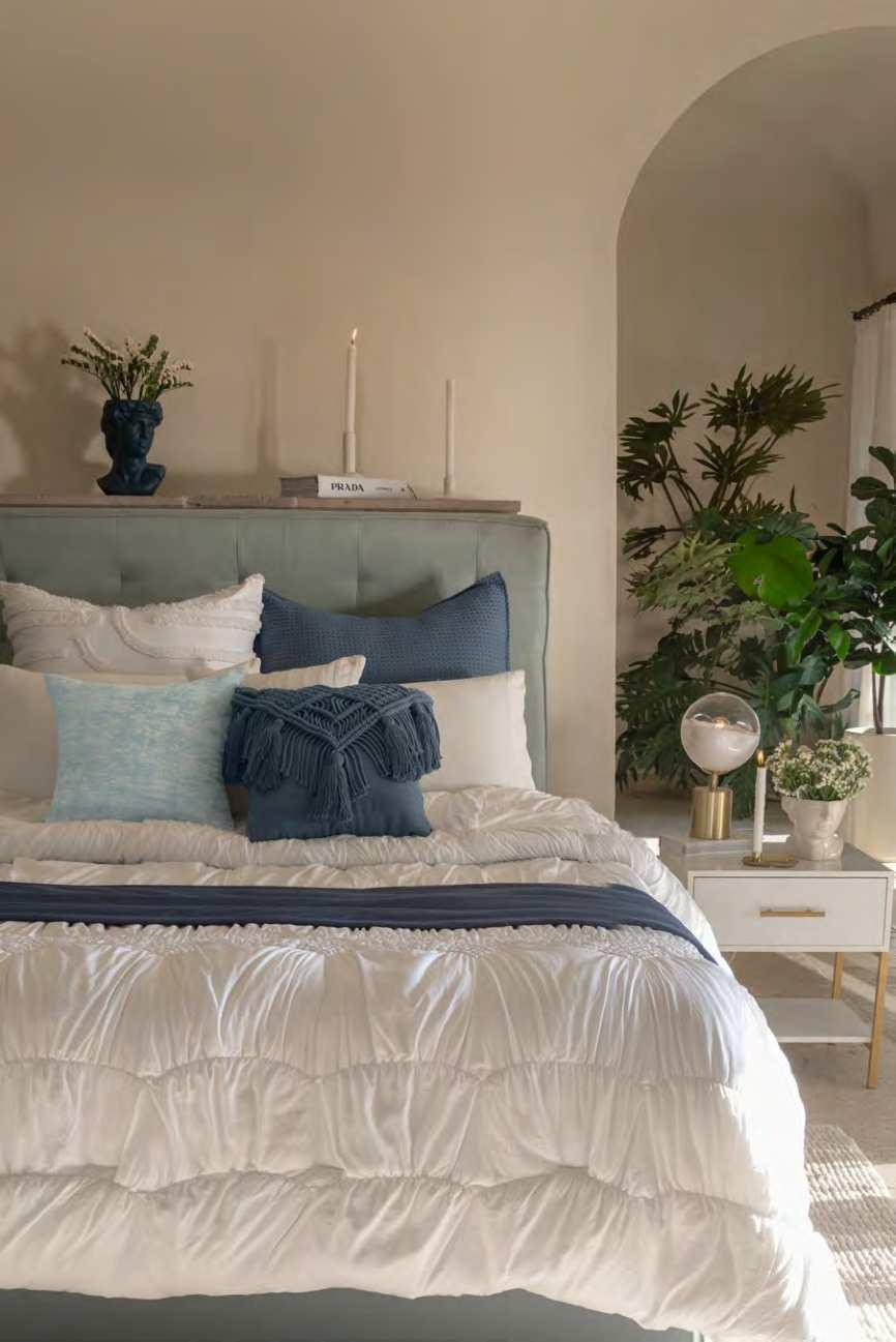 Makeyourbedthe starofthe show with a blue colorpalette and easily change upthe style.