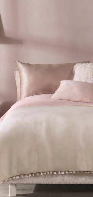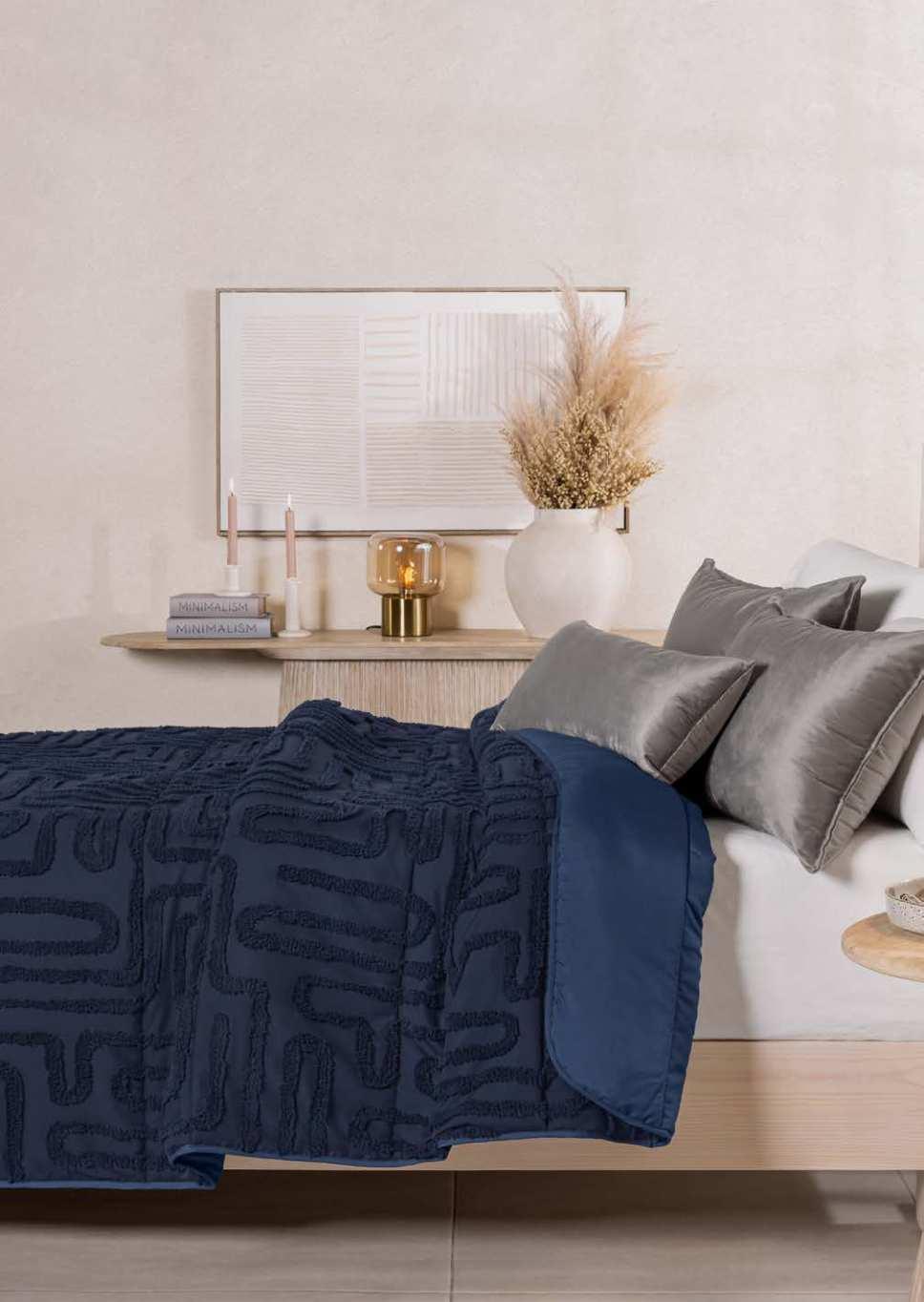 Achieve a layered e昀昀ect by placing the bedspread under your comforter.