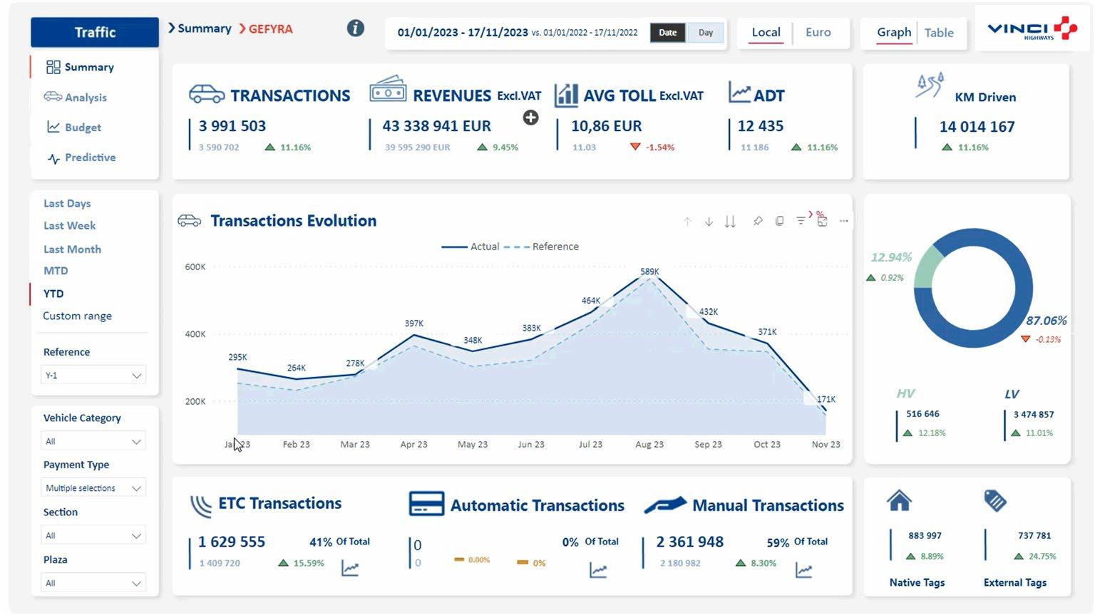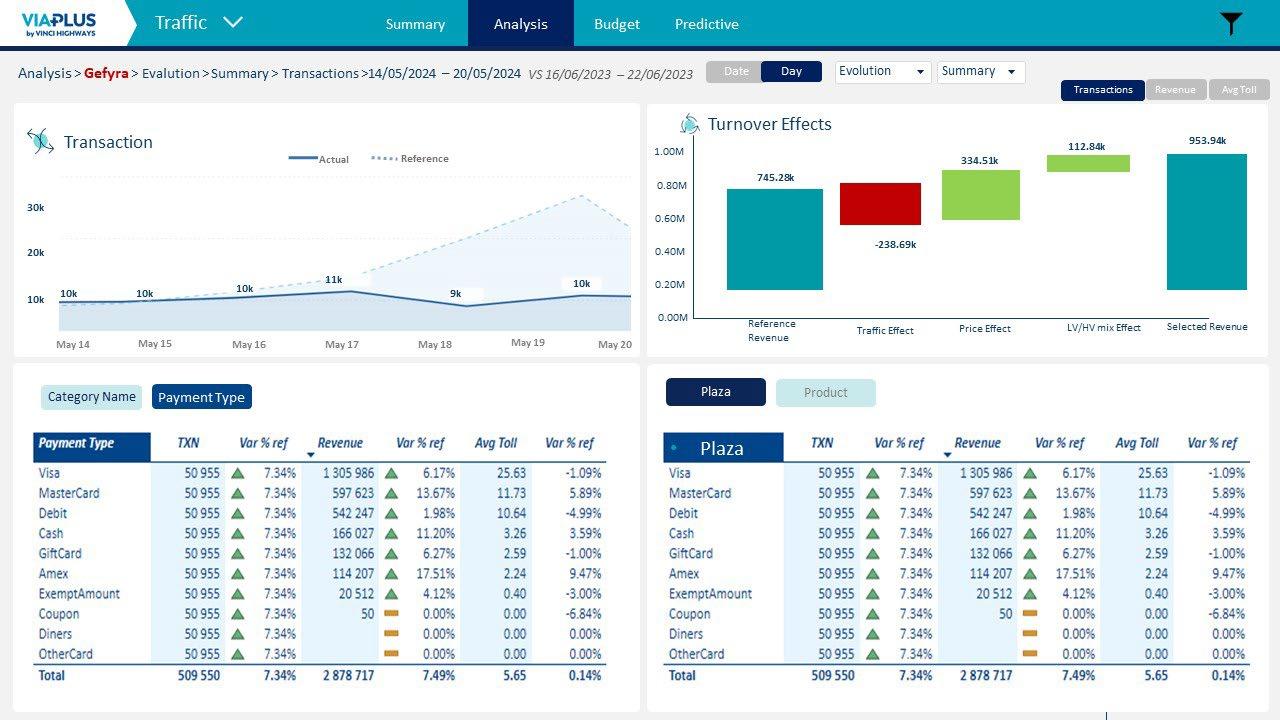Key metrics in a single report with ability to compare with reference years, periods, budgets