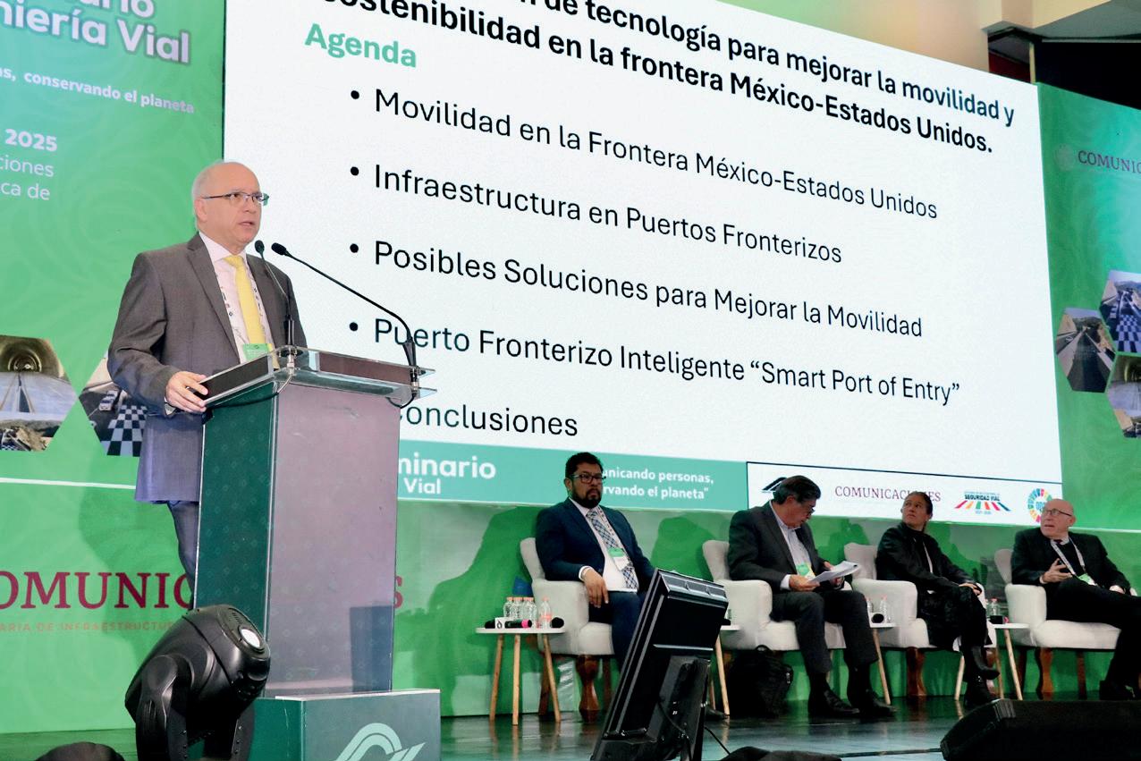 temas más relevantes fue la necesidad de modernizar los cruces fronterizos entre México y Estados Unidos. Tan solo en 2024, circularon por ellos 7.6 millones de camiones. El Ing. Juan Carlos Espinosa, del Texas A&M Transportation Institute, advirtió que el 72 % del comercio bilateral cruza por tierra, lo que exige la implementación urgente de nueva tecnología, mayor capacidad y una mejor coordinación binacional.