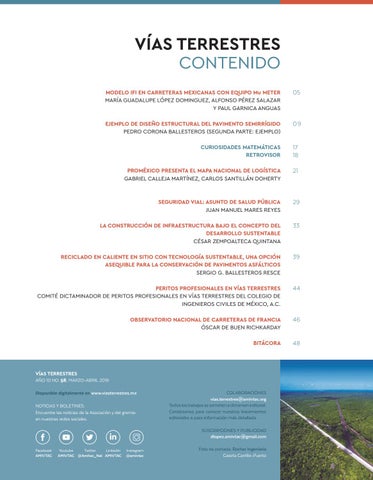 COLABORACIONES vias.terrestres@amivtac.org Todos los trabajos se someten a dictamen editorial. Contáctenos para conocer nuestros lineamientos editoriales o para información más detallada. SUSCRIPCIONES Y PUBLICIDAD dlopez.amivtac@gmail.com