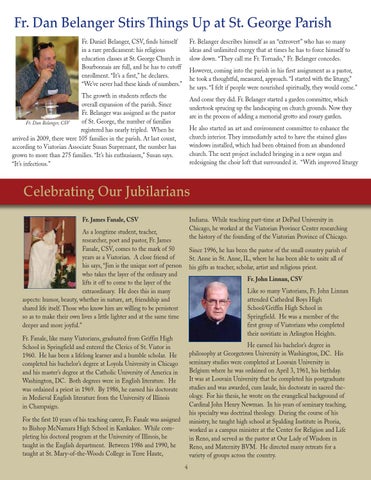Fr. Dan Belanger Stirs Things Up at St. George Parish Fr. Daniel Belanger, CSV, finds himself in a rare predicament: his religious education classes at St. George Church in Bourbonnais are full, and he has to cutoff enrollment. “It’s a first,” he declares. “We’ve never had these kinds of numbers.”