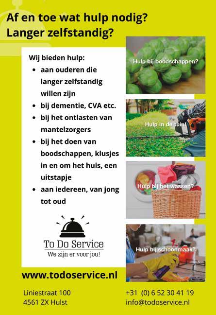 Niets uit deze uitgave mag worden gereproduceerd en/of openbaar worden gemaakt door middel van druk, fotocopie, film of op welke andere wijze dan ook, zonder voorafgaande schriftelijke toestemming van de uitgever. Via Vivo Magazine® is een gedeponeerd Handelsmerk van Via Vivo BV te Terneuzen. INHOUD 05 Schelfhout voor Oog en Oor 07 De Haarzaak 09 Podozorg Sluis 11 Team Vital Terneuzen 13 Woon- en interieurtrends 15 Paepe’s Meubelen Oostburg 17 CD Onderhoud 19 Le Art by els 23 Sani-dump en Küchen-dump 27 Baderie Terneuzen 30 Herfst- en wintermode 43 Werelddierendag