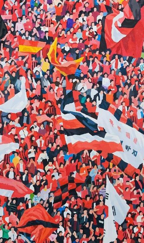 Be it leisurely weekend strolls in the park or serene gatherings along the shoreline at daybreak, his immersive vistas resonate with human narratives and heartbeats united. With a certain three-dimensionality, Sang Won imbues his canvases with a dynamic sense of motion, reviving the hushed whispers, joyous laughter, and impassioned outpourings of emotion that emanate from the crowd.