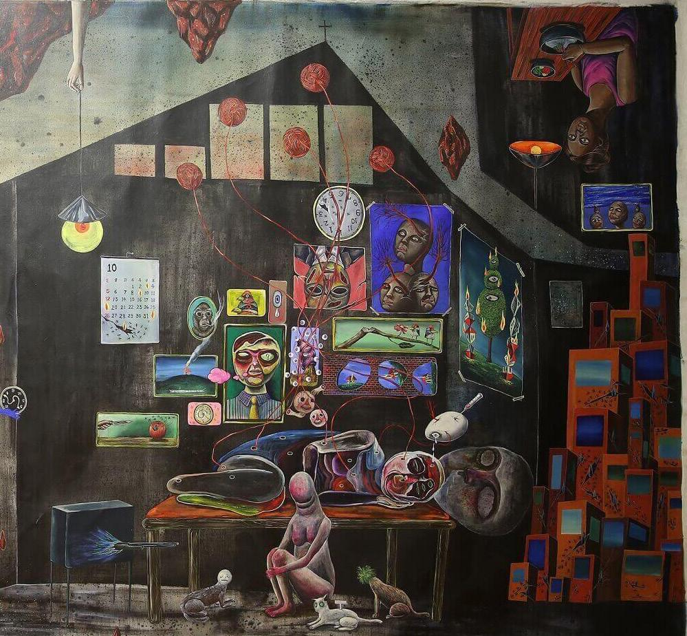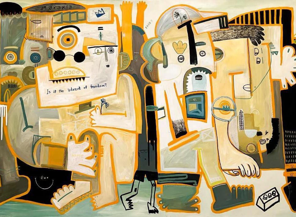 Coexistence - 2008 (2020). Acrylic and Engraving on Canvas. 95 x 120cm.