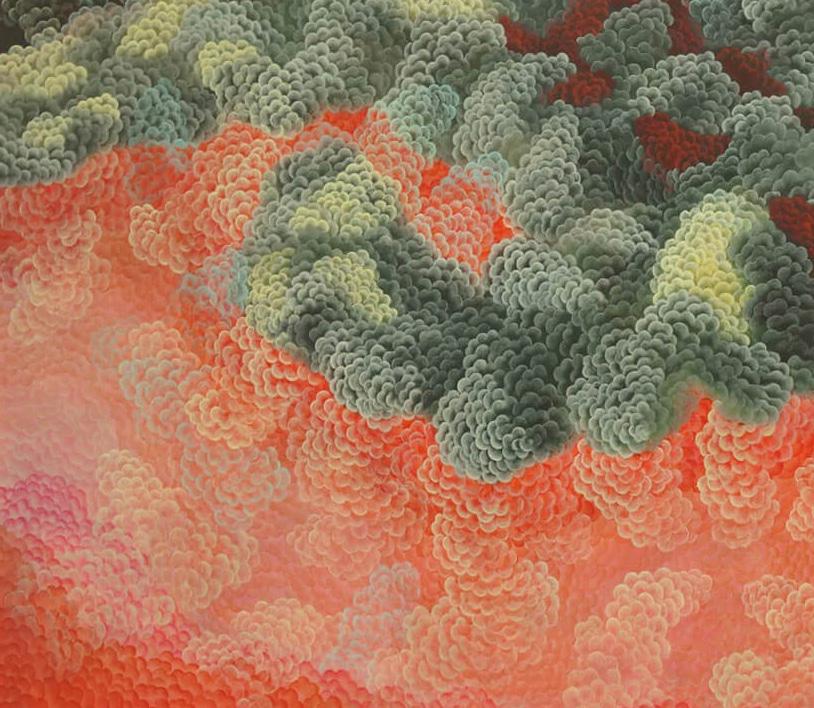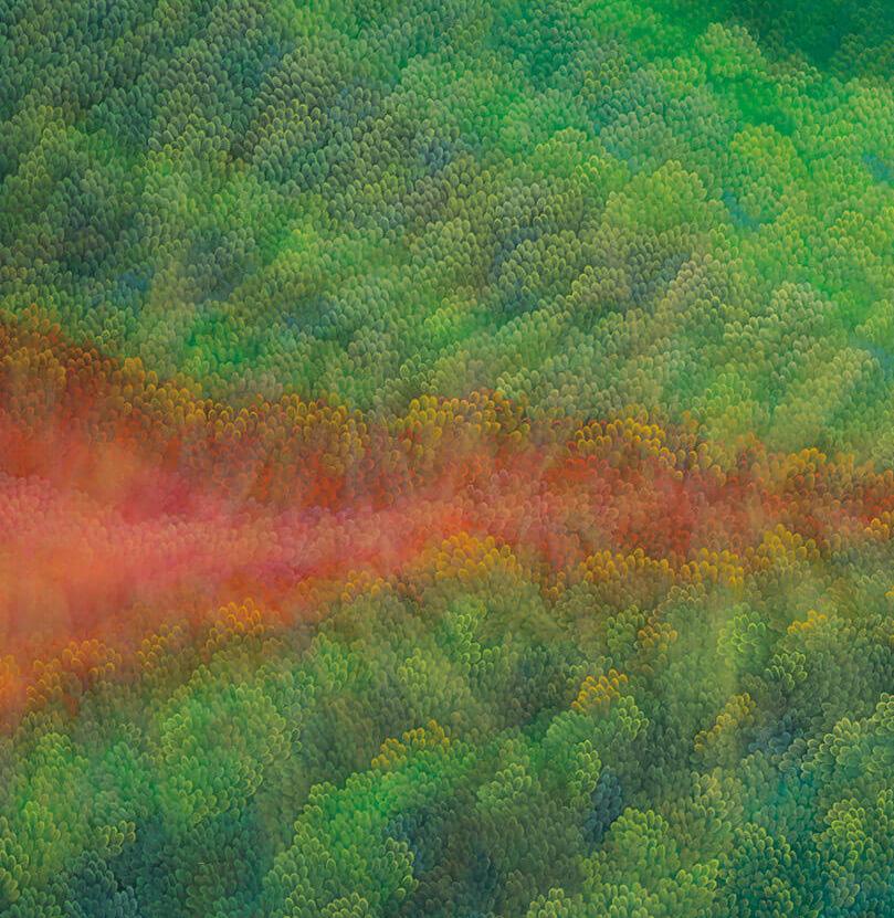 Yoon Gyeom’s body of work exists as a sanctum, a realm of creative cleansing where blockages unravel in layers of mesmerizing patterns. Through his macroscopic landscapes, Gyeom delves into infinitesimal changes in color and form. In doing so, he lays bare psychological and physiological imperfections in a way that shelters him from the pull of societal expectations.