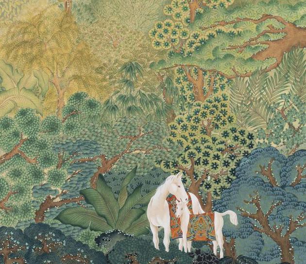 As a fledgling creative, Eunju employed animal motifs as a simple mode of self-expression. She then went on to explore the ornamental hunting scenes popularized in the late Joseon period, ultimately identifying with the charisma and bravery of the equine subjects on display. Adorned with elegant saddles and striking color contrasts to match, character-filled horses now roam wild at the center of her creative landscapes.
