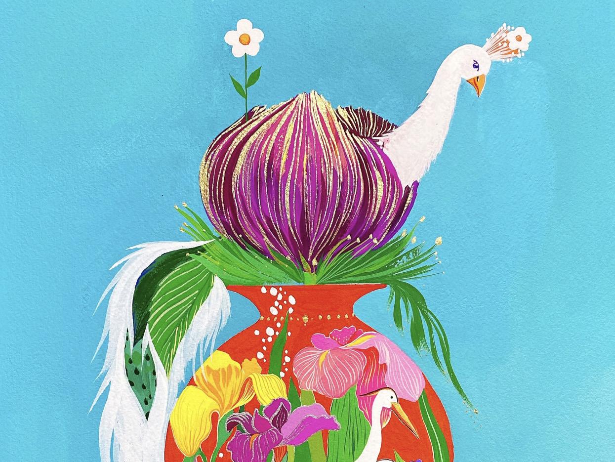 Pink Peacock (2021). Gouache on Paper. 35 x 27.5 cm.