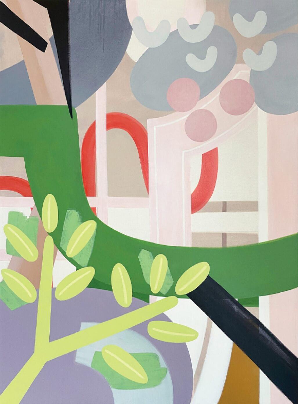 SuYeon’s unique approach to abstraction freely stretches and transforms shapes, hinting at a sense of displacement while creating a palpable air of togetherness over time. She combines colors and textures that may seem out of place at first glance, but through soft forms and balanced compositions, they mature in the space, reassembling between worlds and flaunting the pleasures of belonging against the odds.