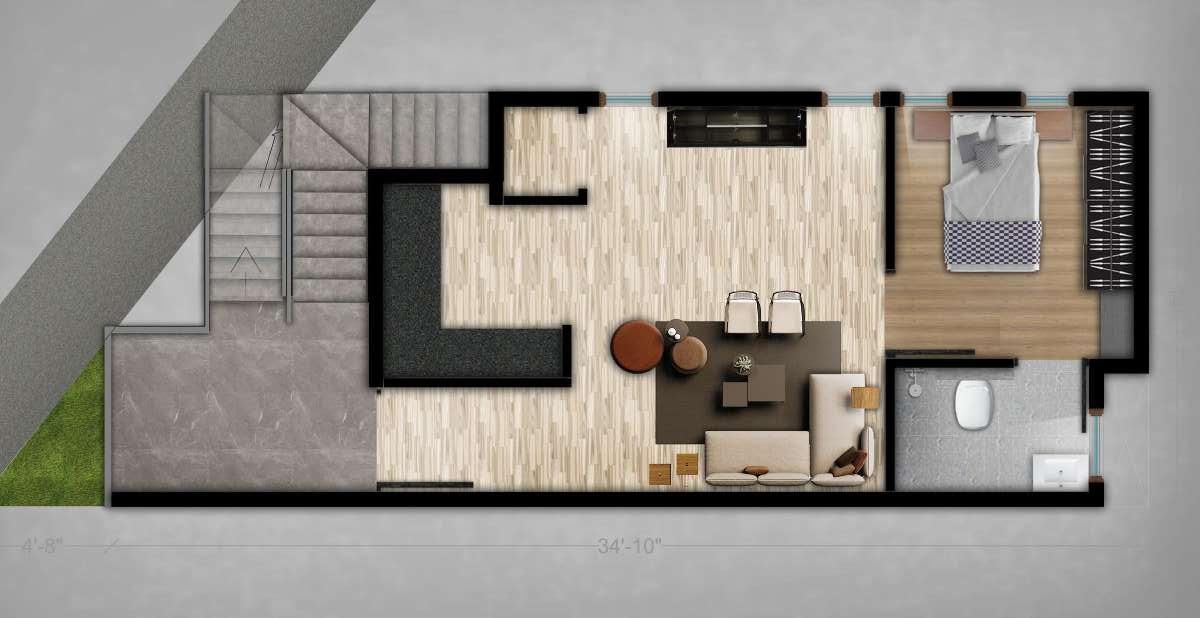 +1'6"Lvl 9'-6" 6'-2" CARPARKING +1'0"lvl +11'0"Lvl +21'6"Lvl 10'-6" 54 TOILET TOILET LIVINGROOM +11'0"lvl +32'0"Lvl KID'SBEDROOM +21'6"lvl TOILET 10'-6" +41'6"Lvl 9'-6"