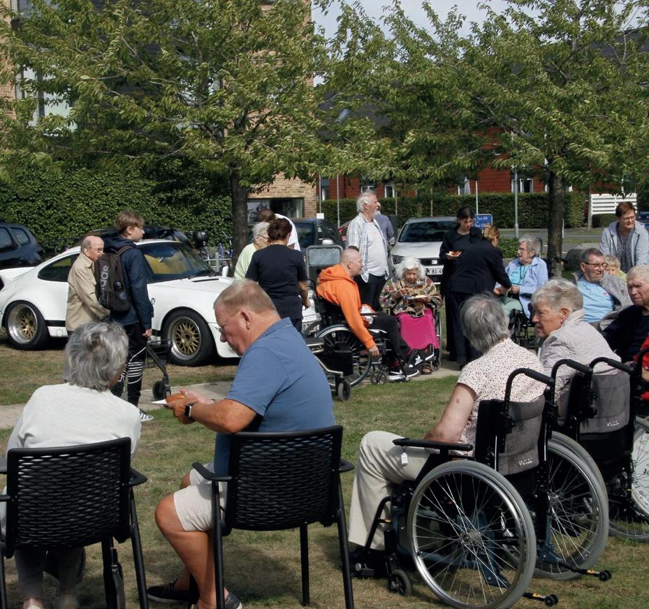 ITG Racing Team havde derfor inviteret beboere fra Christi ans Have, familier og ansatte til nogle hyggelige timer med de gamle Porscher, grillpølser, drikkevarer og en masse hyg ge.