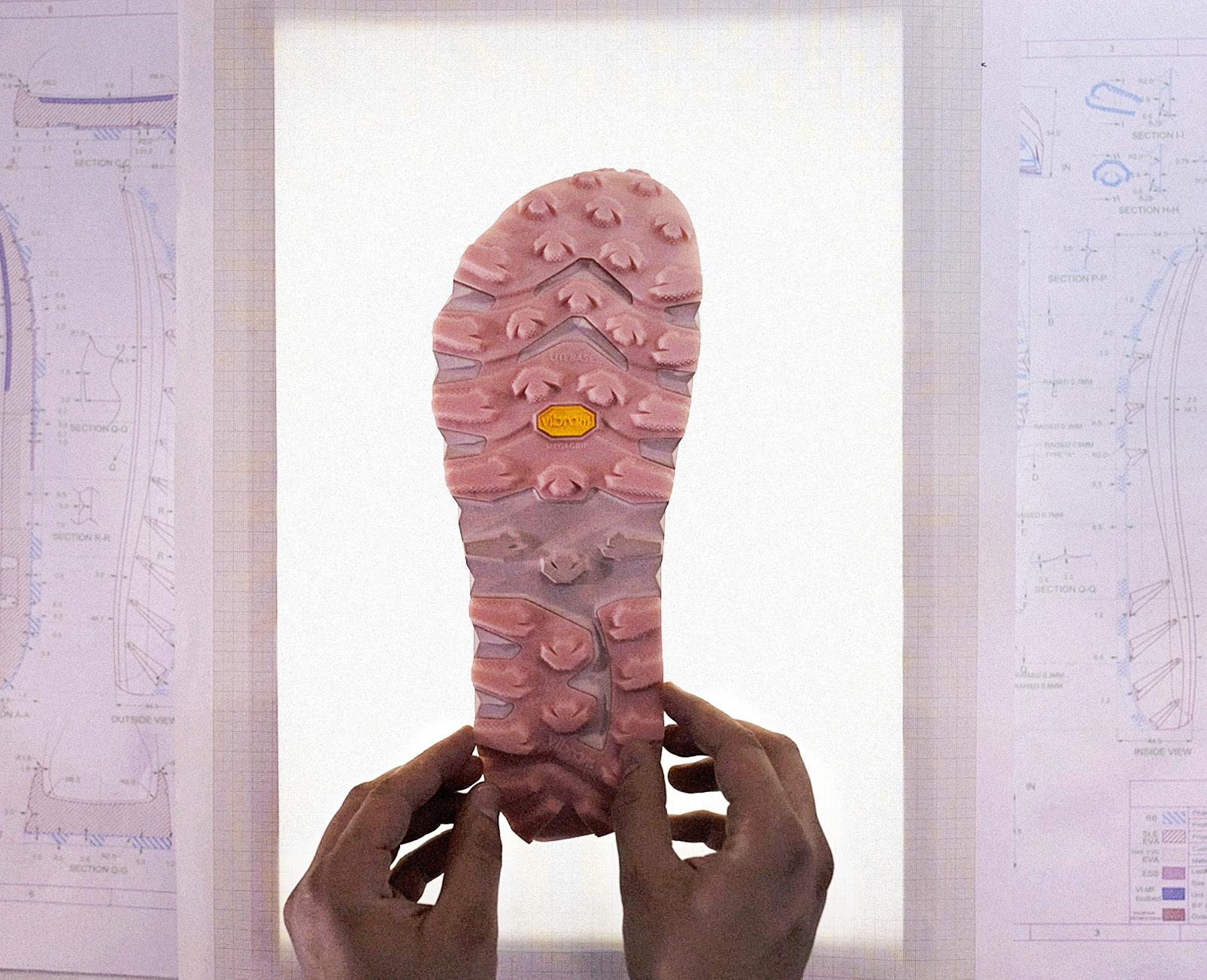 VIBRAM’S DESIGNERS FOCUS ON THE SOLE’S PERFORMANCE AND RELY ON DECADES OF EXPERTISE TO IMPROVE FORCE TRANSFER FROM THE FOOT TO THE GROUND