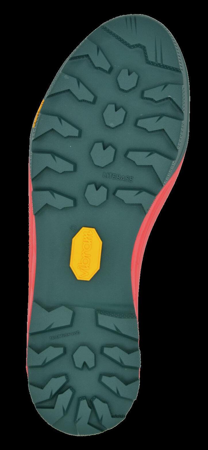 BUILT WITH VIBRAM’S EXCLUSIVE RUBBER COMPOUND, THE OUTSOLE RESISTS WEAR AND TEAR, WHILE THE MIDSOLE MAINTAINS THE ABILITY TO ABSORB IMPACT AND RESIST ABRASION.
