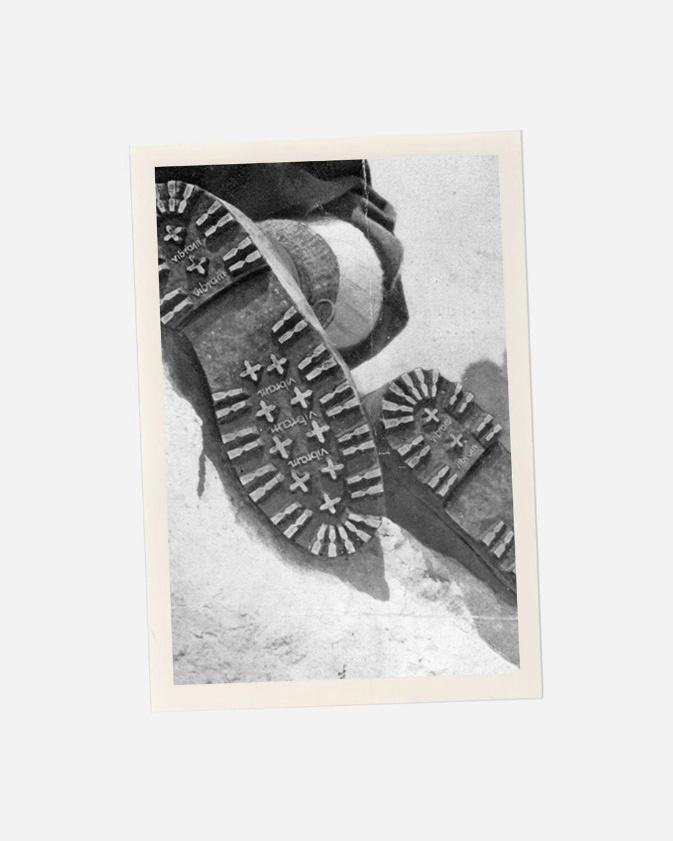 VIBRAM’S LEGACY BEGAN IN 1936 WHEN FOUNDER VITALE BRAMANI AN ACCOMPLISHED MEMBER OF THE ITALIAN ALPINE CLUB—CREATED THE FIRST RUBBER SOLE FOR MOUNTAINEERING WITH A MORE AGGRESSIVE TREAD. THIS STROKE OF GENIUS GAVE BIRTH TO THE CARRARMATO, THE FAMED ORIGINAL VIBRAM SOLE THAT REVOLUTIONIZED BOTH MOUNTAINEERING AND THE WORLD OF FOOTWEAR FOREVER.
