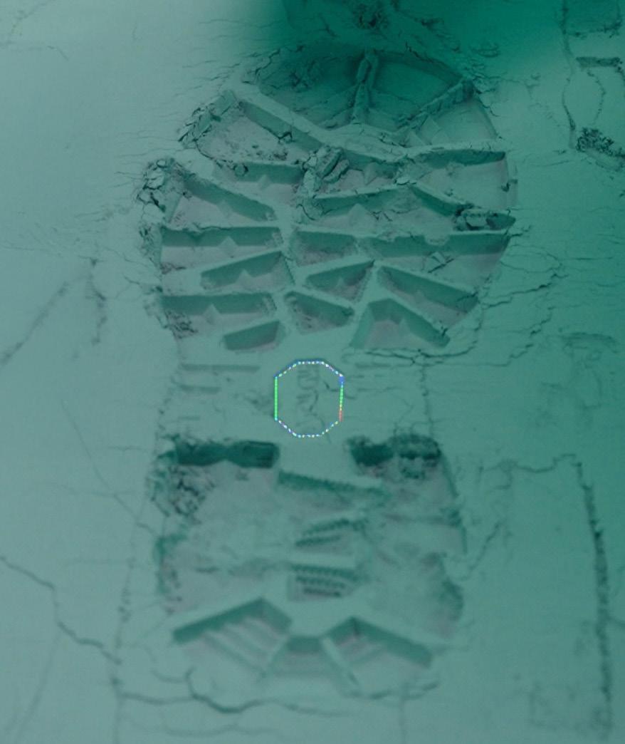 THE VIBRAM TESTER USES A PIVOT POINT, AND SAFELY SECURED WITH A CABLE AND A BELT, THE TESTER TILTS THE BODY TO EXERT MAXIMUM FORCE ON THE SOLE. WHEN SLIPPAGE OCCURS, THE FORCE PLATFORM RECORDS FORCE DATA. THE FINAL OUTPUT IS THE STATIC COEFFICIENT OF FRICTION (COF).