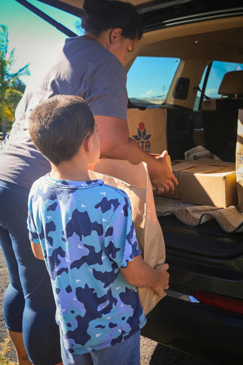 Kaukau 4 Keiki is a powerful demonstration of community volunteerism. This year, families who signed up to receive food were invited to volunteer at their distribution site. In this way, we promote contribution and belonging, and shifting identities from client to contributor