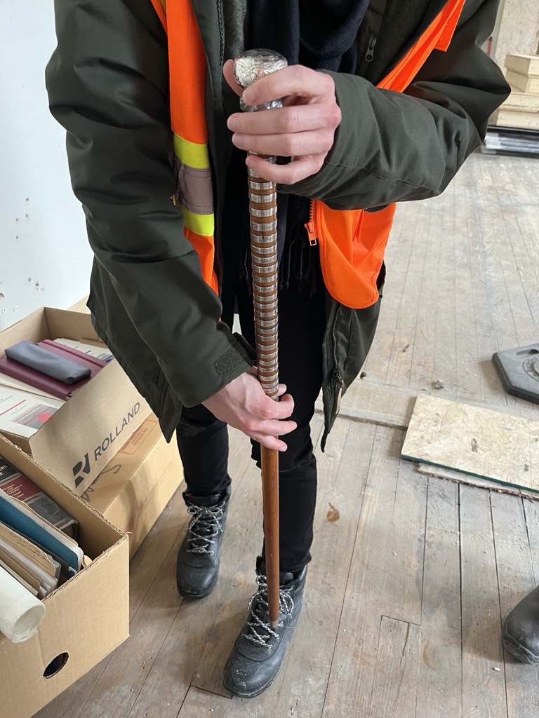 Construction workers preparing for renovations were cleaning out a wooden cabinet in what was once the office of the librarian of the Birge-Carnegie Library when they found an old wooden stick decorated with the names of Methodist Church leaders from eastern Ontario.