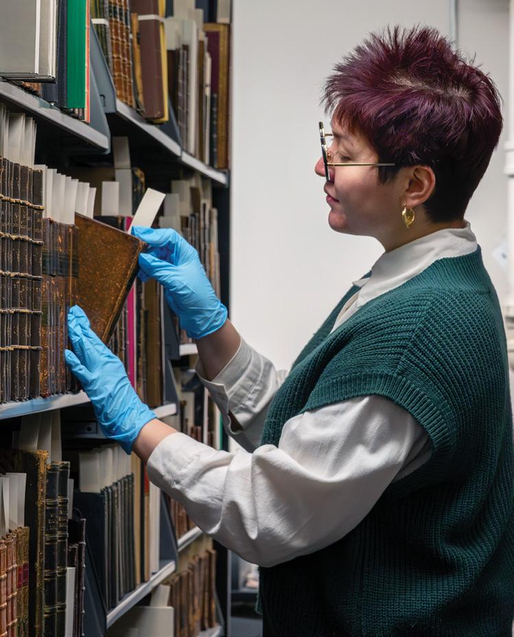 Legacy gifts can be used for many things, including acquisitions. Special Collections Archivist Bailey Chui is shown here in the E.J. Pratt Library Special Collections area.