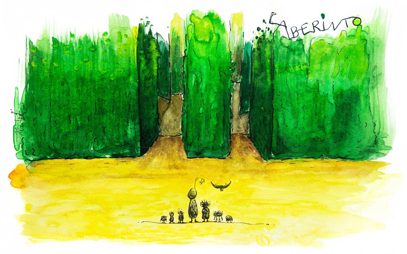 - ¡Parece un laberinto - dice Buhita -, pero sin mi pluma no puedo volar por encima de los setos!