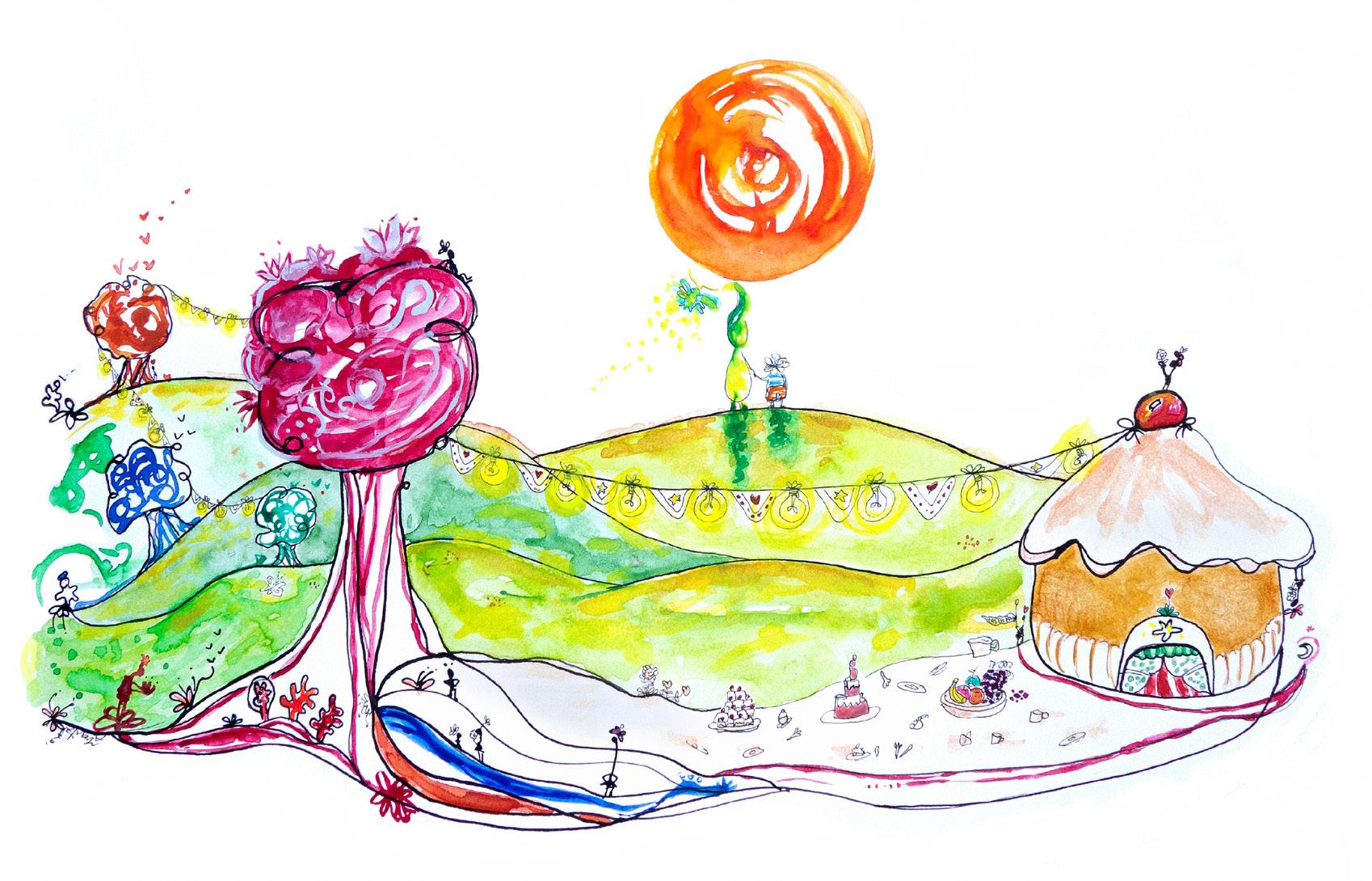 Juntos emprenden el camino de vuelta disfrutando al ver que los árboles les abrían el paso llenándoles de agradables aromas y suculentos frutos. Al llegar al claro del bosque se encuentran con una gran fiesta que les habían preparado agradecidos todos sus habitantes.