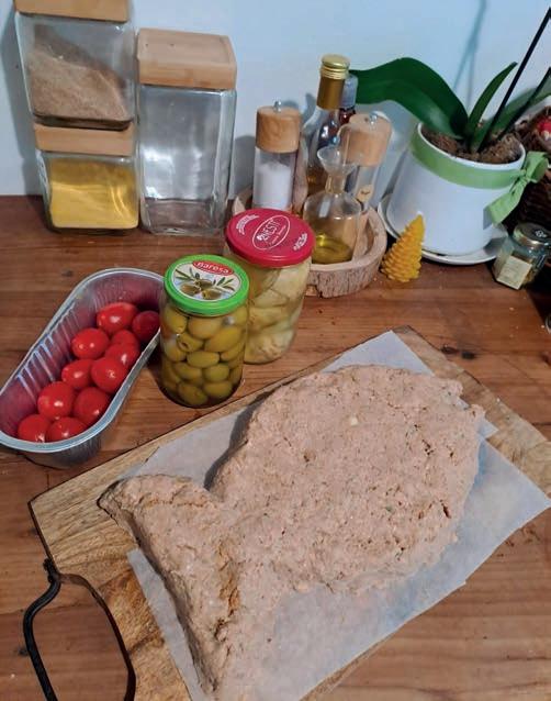 Ci si può però scatenare anche disegnando direttamente sull’impasto con un tubetto di maionese come se fosse una sac à poche, oppure creare il proprio “mosaico”, se piacciono, con cetriolini, capperi o altri sottaceti. Non male nemmeno l’idea di grandi squame fatte di fette sottili di uova sode… Il polpettone va conservato in frigo e servito freddo, magari accostato a una fresca insalata mista o a delle bruschettine (eventualmente anche queste ottenute dal pane vecchio, biscottato nel forno), considerando che la consistenza permette anche di spalmarlo.