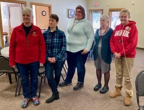 PICTURE ABOVE: Nealna Gylling, president, Jane Matthies-Holtan, correspondent, Dottie Bisted, Treasurer, Linda Buck, Secretary, Barb Wenschlag, Historian.