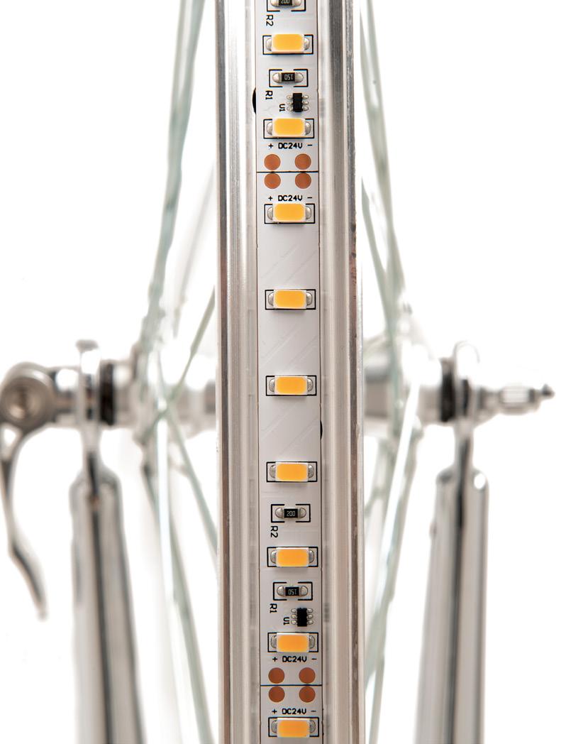 Cyclampa’s high-design floor and table lamps seamlessly blend style and technology. Cyclampa lamps are comprised of original, repurposed bicycle parts.