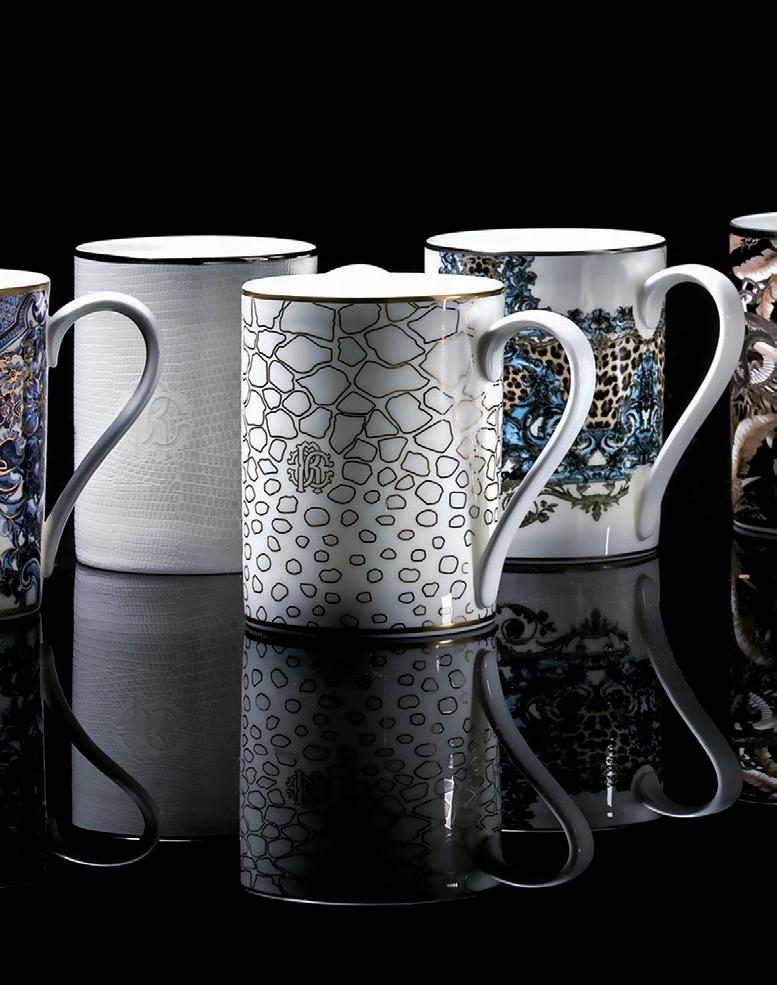 Roberto Cavalli’s tea and coffee servers, serving dishes, candles, and gift boxed sets are joyful with sensual aesthetics. The tableware’s luxuriant “art de la table” is characterized by fabulous animal patterns and plant motifs by Roberto Cavalli who is a true icon of Italian style.