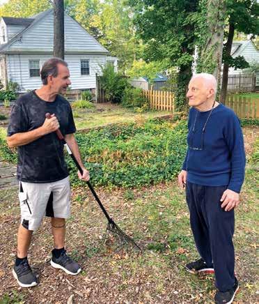 Jay Abate catches up with Nick Meola when he stops by to rake his leaves.