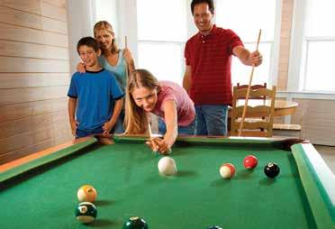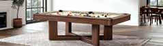 keep in mind is the space with the billiard tables. They are usually 8’ x 4.5’, so they take up a lot of room, plus you need room for the cues as well, and they are generally 54” long. So, plan accordingly! Some offer dining tabletops, so the billiard table can double as overflow seating, especially around the holidays —a great option for when the whole family has get-togethers.