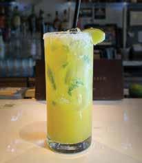 cucumber basil martini. The bright, modern interior is complemented by one of the area’s most inviting outdoor dining spaces, featuring retractable coverage, heaters, string lights, and lush greenery.