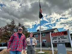 Commander Burt Brown of American Legion Post 140 stands with Life Scout Sara Abraham-Winkler at the ceremony celebrating the completion of the veteran memorial at American Legion Post 140 revitalization project.