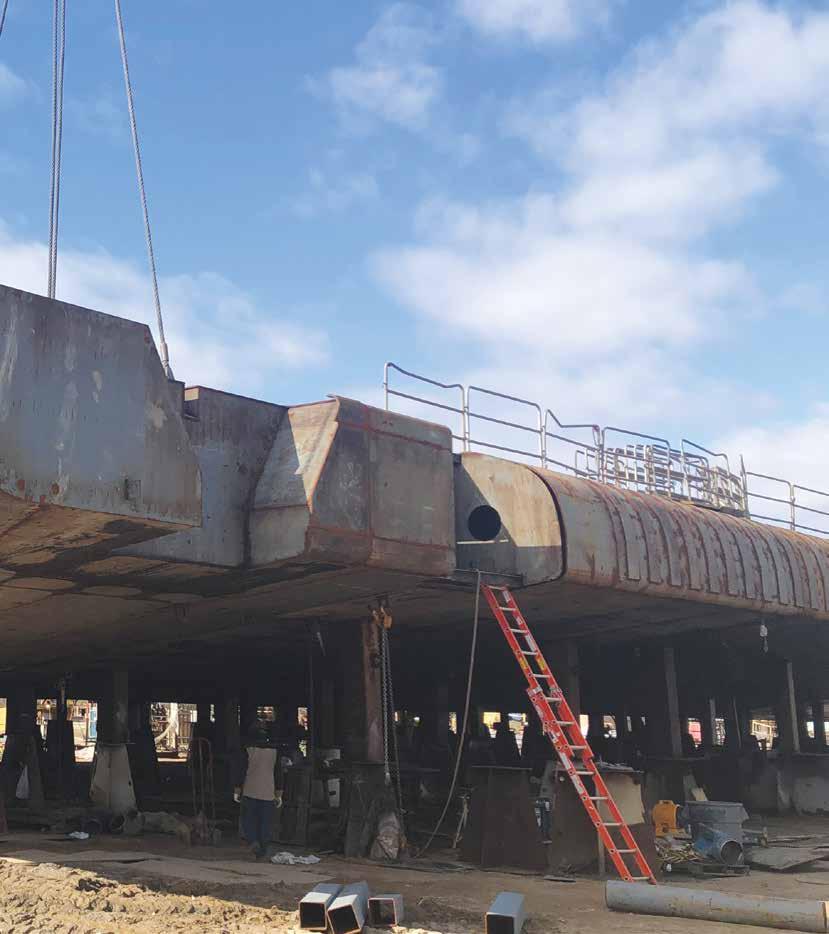 The district officially entered the revetment business in 1948 with the launch of the Mat Sinking Unit, or MSU, a floating plant operation that endures today. The fleet includes a mat deck, where crew members use pneumatic, jackhammer-like tie tools to join custom concrete squares. After nearly 80 years of service to the Mississippi River, the MSU and her crew need an upgrade for a new era. ARMOR 1, the first vessel of its kind in the world, will slash the time needed for repairs, increase productivity, and revolutionize the revetment mission.