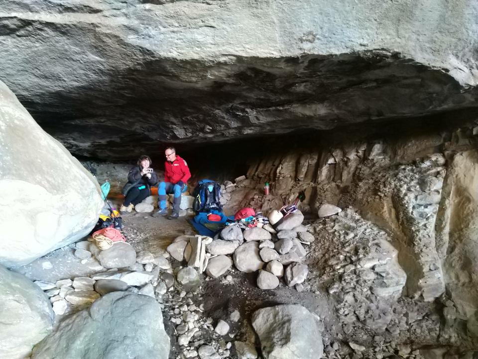 By 11:00, we were at the cave at the base of the climb The prospect looked phenomenal I gladly accepted the rack from Gavin, who'd freed and aided the pitch previously Sarah opted to sit this one out, deciding to enjoy the beautiful day from the cave, while Gavin planned to jumar the pitch to save time