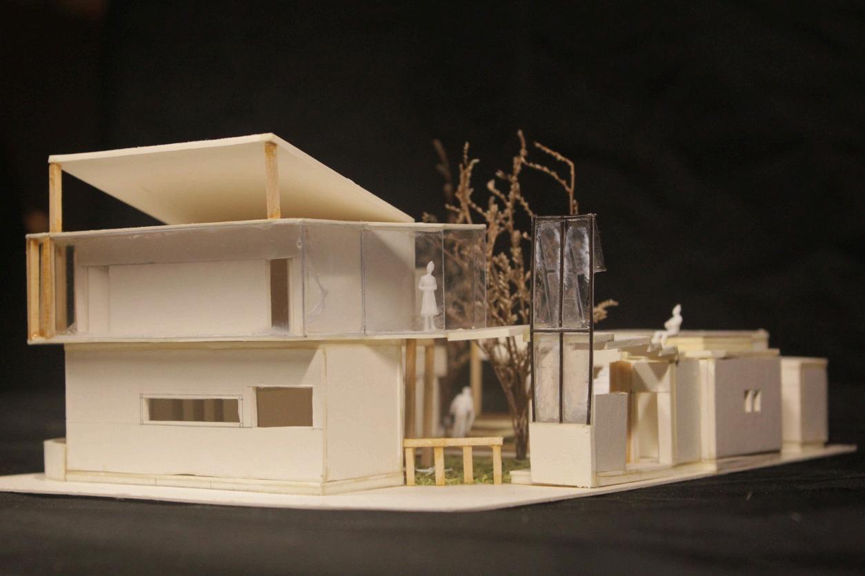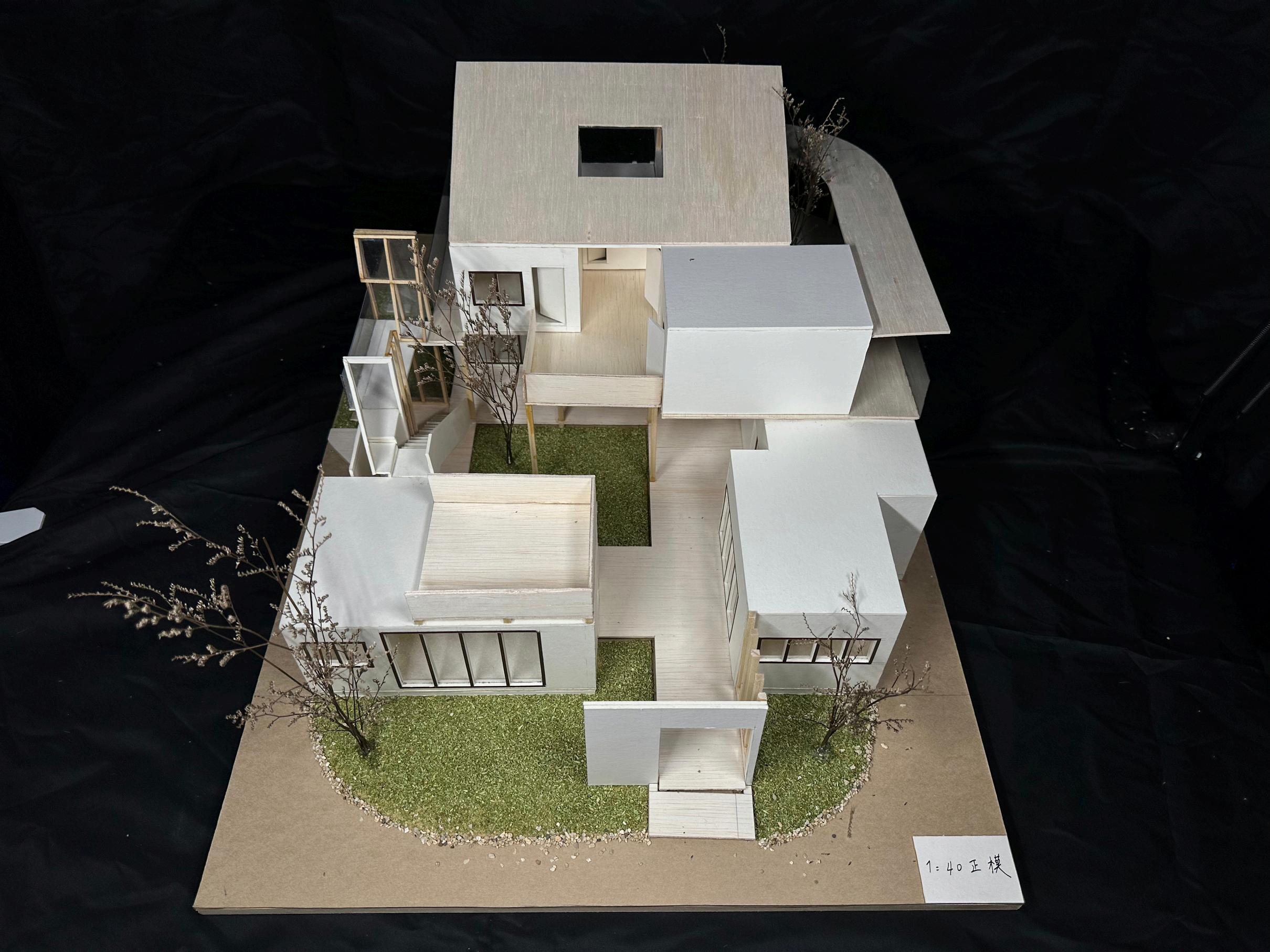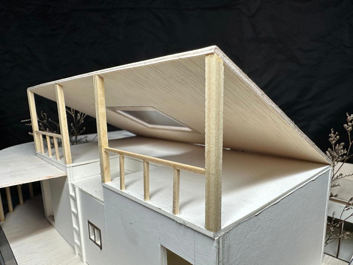 模型右視 模型左視 隔間透明窗 工作室後庭全貌 頂層陽台 走道光線