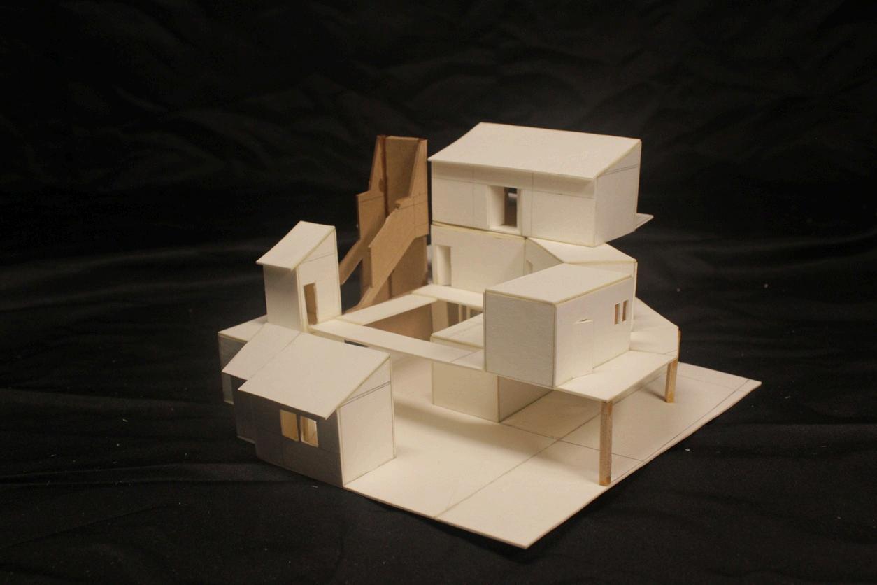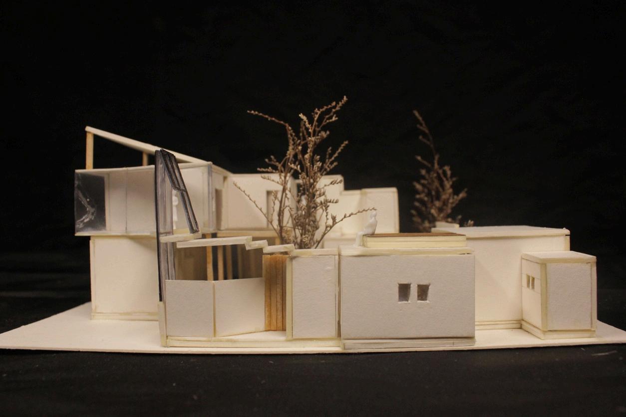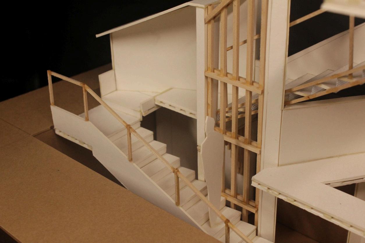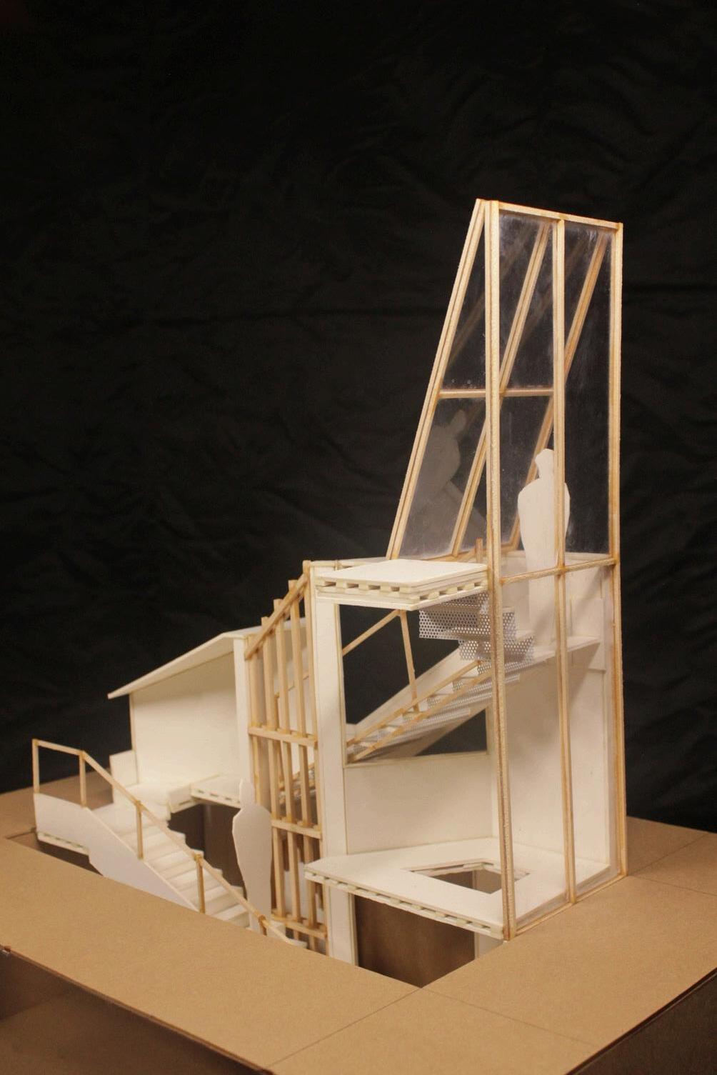 模型前視 模型後視 大門入口 梯的連接 聚集陽台 休憩木棧道