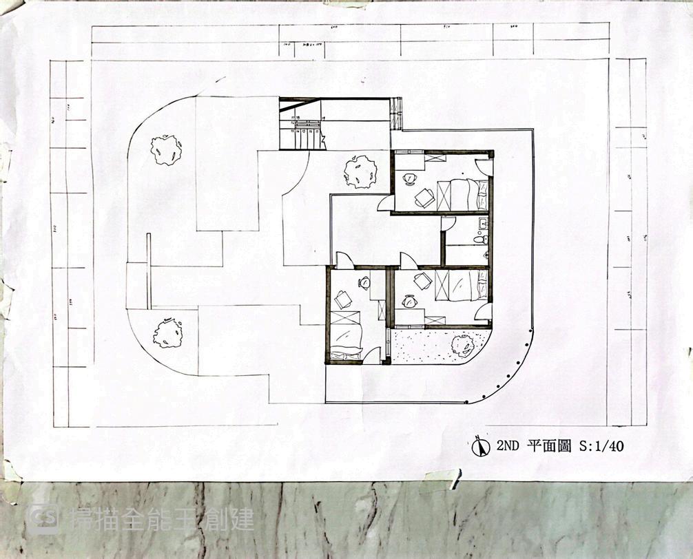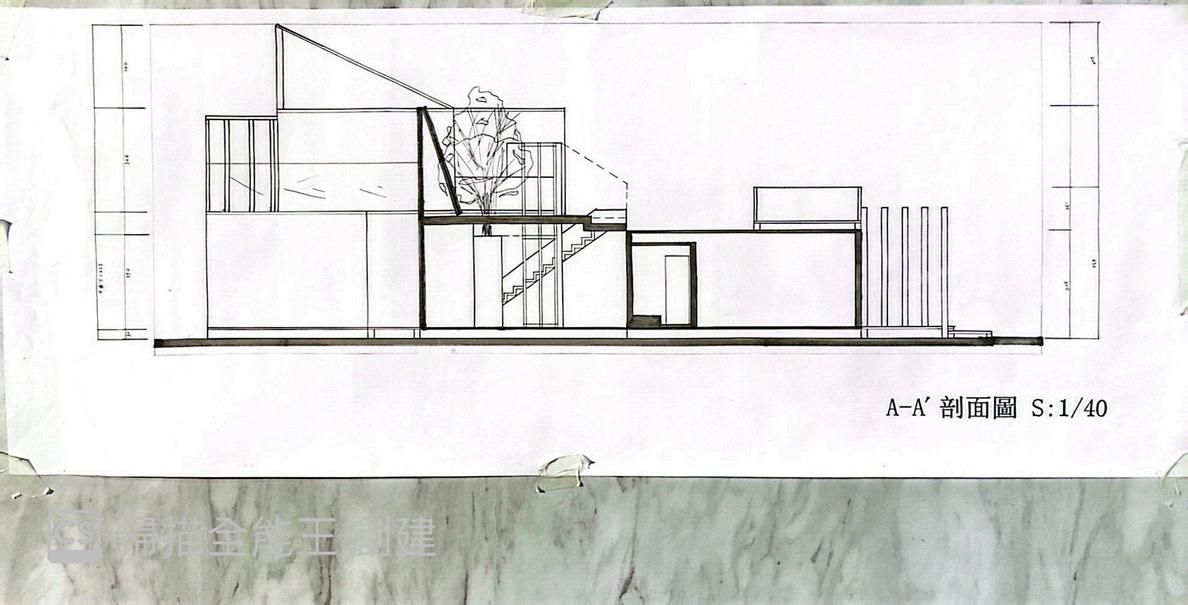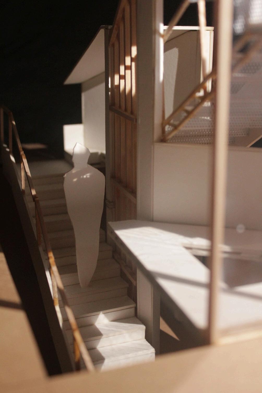 樓梯配合牆面,穿透在內外空間。