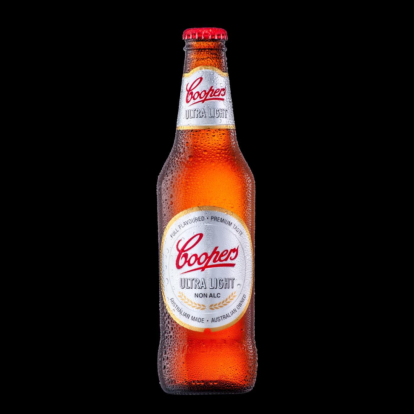 Coopers Ultra Light is a full flavoured, premium beer with a rich golden colour and crisp bitterness, with one important difference: an alcohol content of less than 0.5%. Coopers Ultra Light is made using only the finest Australian malted barley, hops and yeast, with no added sugar.