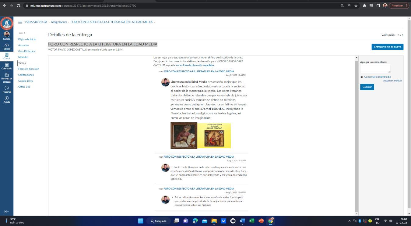 Una actividad muy bonita donde todos compartimos un poco de lo investigado sobre la literatura en la edad media.