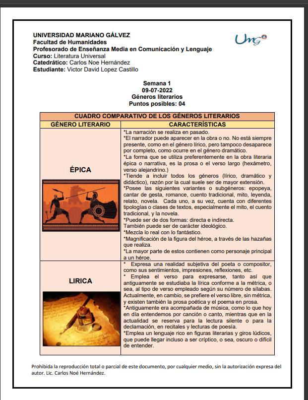 la literatura universal como el conjunto de todas las obras que nos llevan a la agrupación de las literaturas del mundo, y posteriormente, al estudio de éstas; por lo que abarca un campo muy amplio. Según Martín de Riquer, indicar una idea de una literatura realmente universal implica que todas las literaturas del mundo deben tener el mismo valor y atractivo. A continuación, se estará visualizando los trabajos realizados a lo largo de todo el semestre.